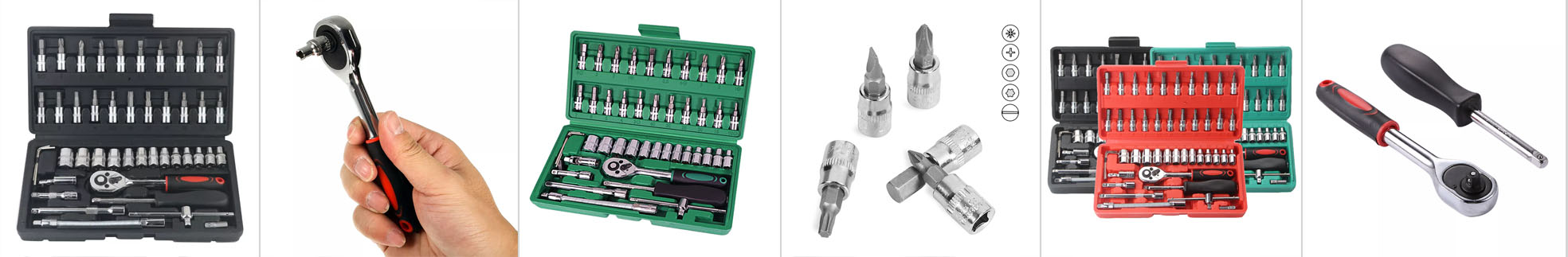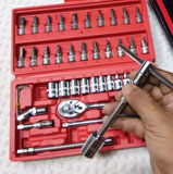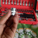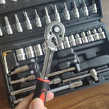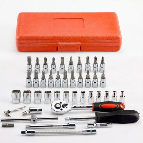 Набір інструментів має бути в арсеналі будь-якого чоловіка. Комплектація набору знадобиться для виконання більшості робіт, пов’язаних з ремонтом обладнання, авто, мото, велотехніки, а також інших робіт у побуті та в гаражі будь-якого майстра. В комплекті найпопулярніші розміри торцевих головок-біт, а також кардан, Т-подібний вороток та гнучкий подовжувач для відкручування та закручування кріплень у важкодоступних місцях.